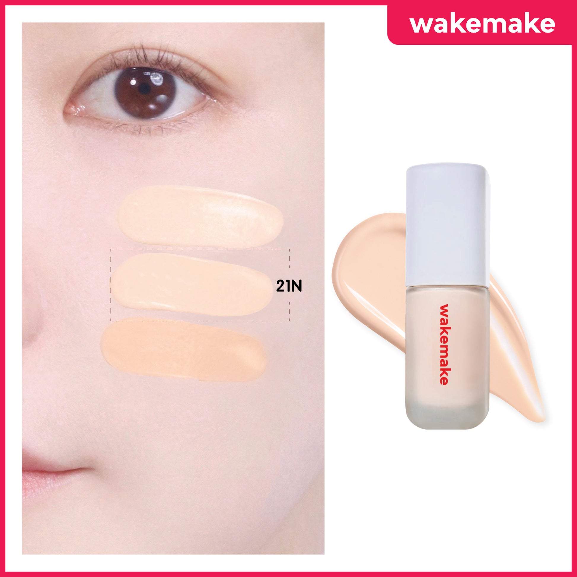 - WAKEMAKE專屬完美色調 ,底妝輕薄透亮卻能完美隱形毛孔