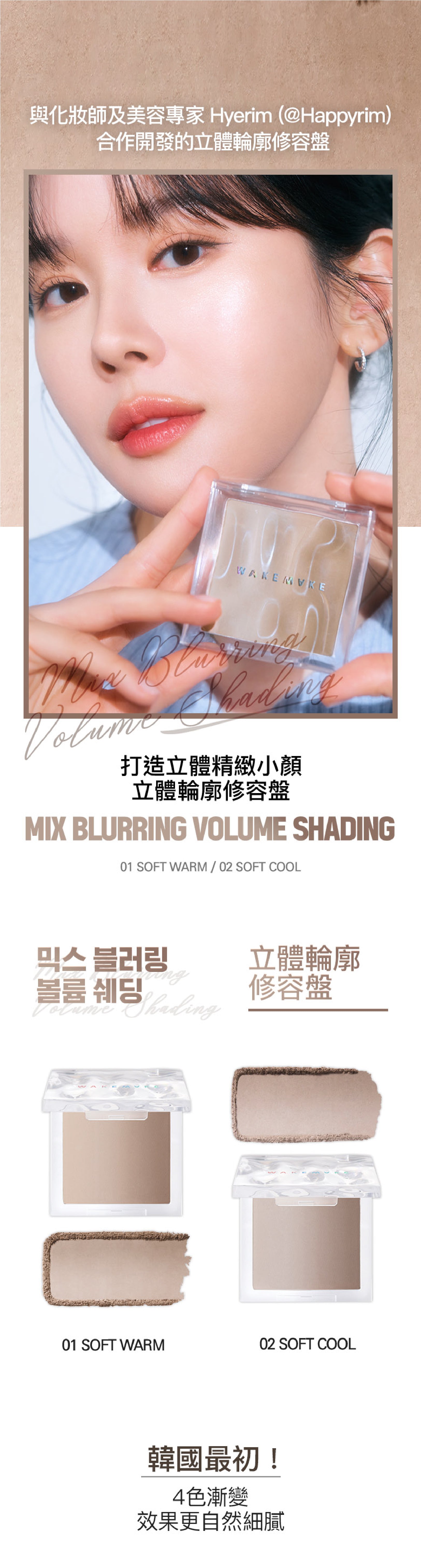 4色漸變多用途彩妝修容盤,輕易打造立體精緻小顏