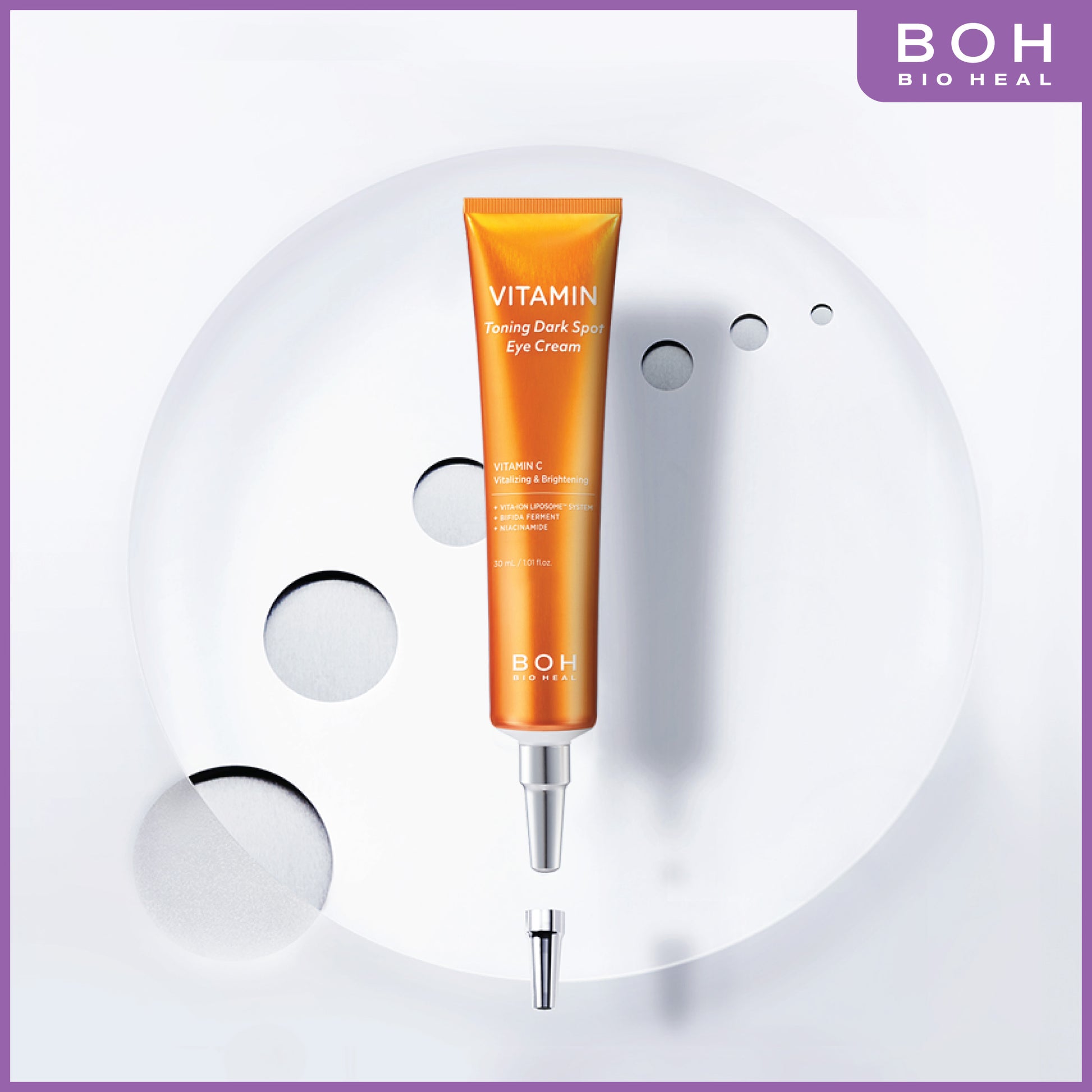 - 蘊含 VITA-ION LIPOSOME™ 複合物 : 專利配方結合11款維他命 (當中包括 維他命B3 — 美白肌膚的主要成分),瞬間提亮、淡化眼部黑色素